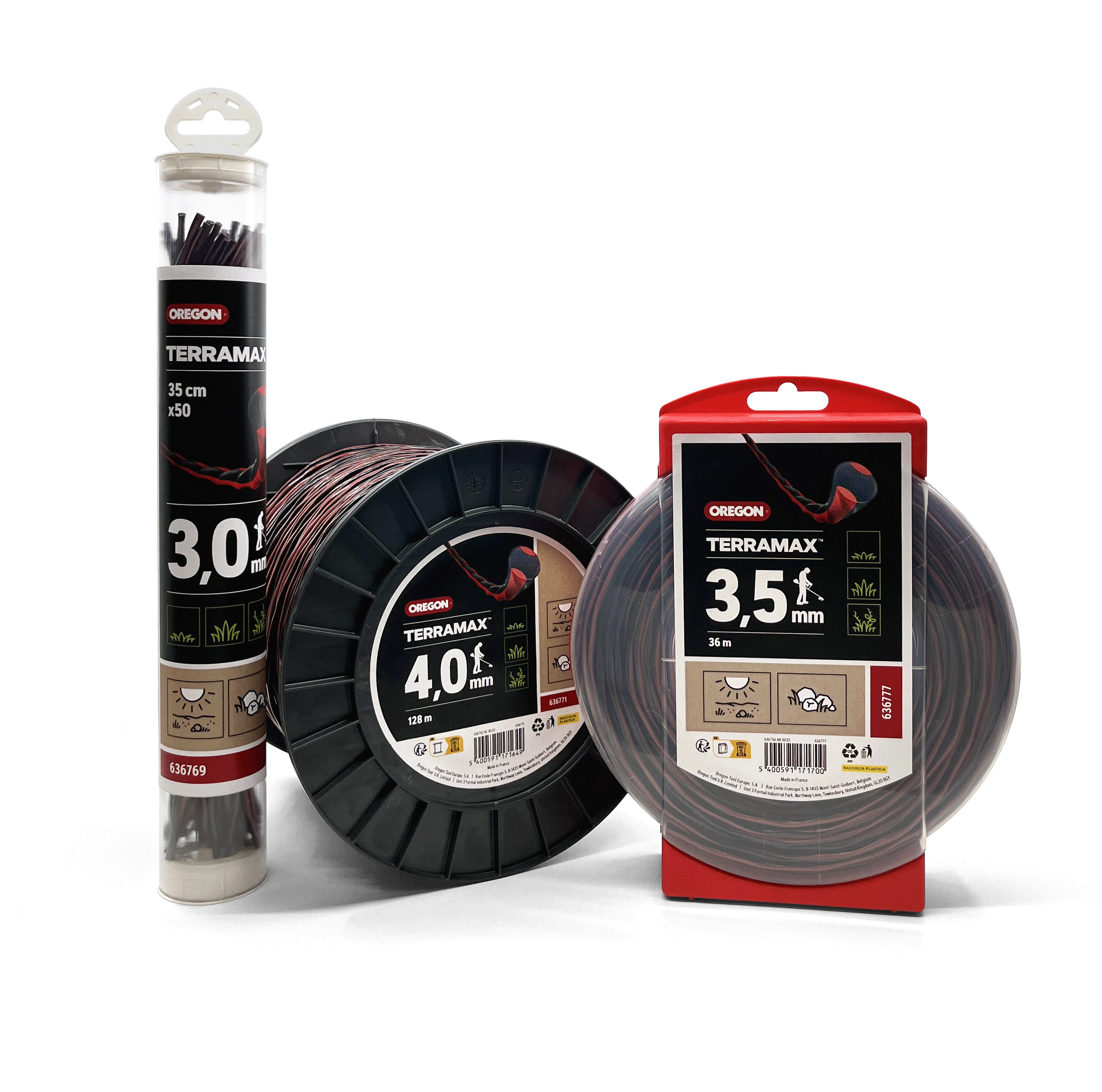 Az Oregon TerraMax egy professzionális fűkasza damil, amely nehéz terepen, sűrű gazban, száraz növényzetben és sziklás területeken való használatra lett tervezve. Magas minőségű kopolimer keverékből készül, így ellenálló és tartós, alkalmas 33 cm³ feletti fűkaszákhoz.